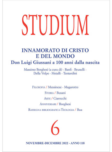 Descrizione di "STUDIUM NOVEMBRE-DICEMBRE 2022 VOL. 6 INNAMORATO DI CRISTO E DEL MONDO"