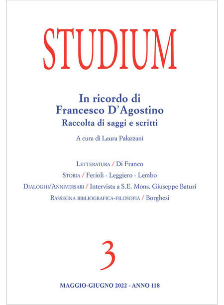 STUDIUM VOL. 3 2022: IN RICORDO DI FRANCESCO D'AGOSTINO RACCOLTA DI SAGGI