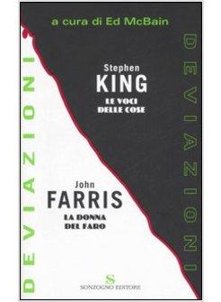 "Deviazioni" è il nome che Ed McBain ha deciso di dare a questa raccolta, dopo aver invitato dieci fra i più grandi nomi del suspense, del mystery e del thriller a misurarsi con una storia più lunga di un racconto e più breve di un romanzo. Ovvero con un romanzo breve, genere in auge nei mystery magazine degli anni '40-'60, ma oggi non più diffuso. I testi qui riuniti - mai pubblicati prima - sono quindi deviazioni dalle forme attualmente più comuni nel poliziesco e nel thriller. Questo volume raccoglie "Le voci delle cose" di Stephen King e "La donna del faro" di John Farris.