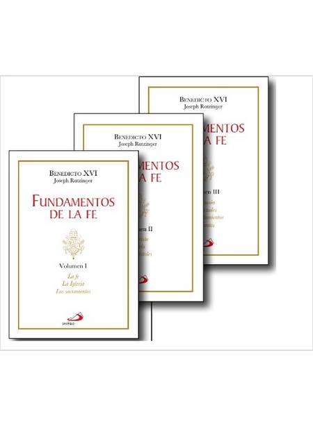 Nueva edición, presentada en tres volúmenes encuadernados en cartoné y agrupados en un práctico estuche, de la colección Fundamentos de la fe, que recoge la síntesis de la fe cristiana realizada por Benedicto XVI. Sus catequesis son una propuesta para profundizar y caminar con solidez en el seguimiento de Cristo, descubrir y vivir la identidad cristiana desde la novedad de la gracia, e iluminar los problemas a los que se ve enfrentado hoy el creyente. En el primer volumen reflexiona sobre Jesús, María y los apóstoles, figuras elementales de nuestra fe, paradigmas para la renovación espiritual, teológica y pastoral. En el segundo volumen aborda los temas de la fe, la Iglesia y los sacramentos desde un profundo calado teológico y con una amplia incidencia pastoral. Por último, el tercer volumen ofrece cuatro temas muy sugerentes: la oración como aliento del alma, las virtudes de Dios como fuente de vida, los santos como testigos de la fe y los mandamientos como camino de libertad.