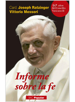 50 AÑOS DEL CONCILIO VATICANO II. Nueva edición corregida y actualizada con motivo de la celebración de los 50 años del Concilio Vaticano II. Vittorio Messori, escritor y periodista italiano, cuyos libros de tema religioso son conocidos en todo el mundo, dialoga con el entonces cardenal Joseph Ratzinger, prefecto de la Congregación para la Doctrina de la Fe. El nuevo papa Benedicto XVI respondió con extrema franqueza a las numerosas preguntas del periodista, incluso a las más delicadas. En este libro, que salió a la luz a la vez en muchas lenguas, dio a conocer en su momento el texto completo de un encuentro que muchos han calificado de «giro histórico» para la Iglesia. En efecto, las raíces de la crisis que desde finales del Concilio padece el catolicismo se exponen aquí con «escandalosa» claridad por quien es una de las voces más autorizadas de la Iglesia católica. Es éste un informe claro y vigoroso sobre los peligros que amenazan a la fe. Un análisis que tiene, tal vez, el acento de una denuncia, pero que no es ciertamente pretexto para la resignación o el pesimismo. Porque lo que el cardenal Ratzinger pretendía era ayudar a los creyentes a encontrar de nuevo la esperanza y la alegría de la Sagrada Escritura leída en el interior de la tradición antigua y siempre nueva de la Iglesia. La traducción del original italiano (Rapporto sulla fede) ha sido realizada por José Luis Legaza (cap. I); Bartolomé Parera (cap. II, III, V-IX) y Gonzalo Haya (cap. IV, XI-XIII).