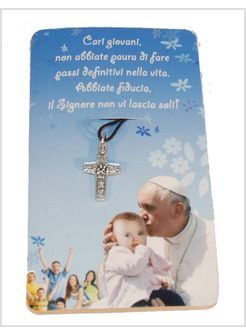 Fronte - immagine di Papa Francesco con bambino con esortazione ai giovani.