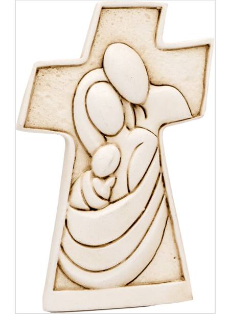CROCE IN RESINA CM 10 X 6 SACRA FAMIGLIA IN RILIEVO CON SCATOLA