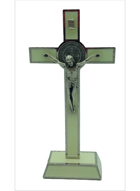 CROCE S. BENEDETTO CM 20 CON BASE SMALTATA FLUORESCENTE CRISTO IN METALLO