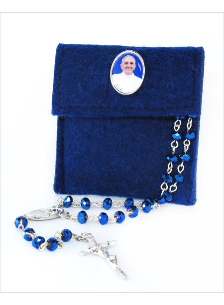 POCHETTE IN FELTRO BLU CON ROSARIO CRISTALLO BLU E SPILLETTA BASILICA SAN PIETRO