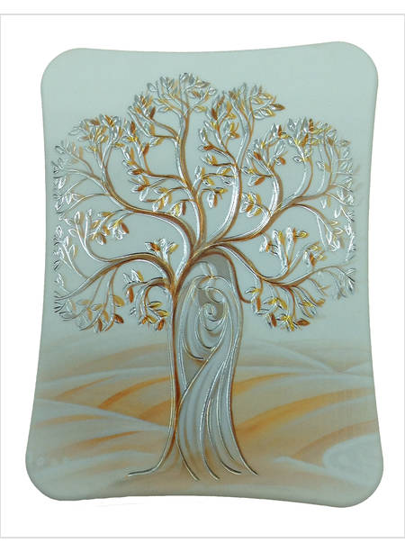 QUADRETTO IN POLIMERO CON DETTAGLI ARGENTATI CM 9 X 12 ALBERO DELLA VITA