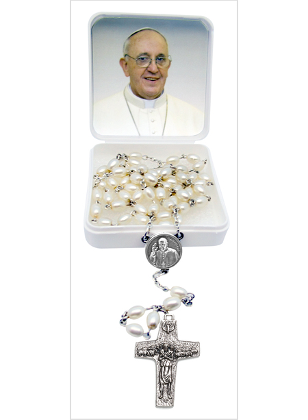 ROSARIO CHICCO DI RISO CON CROCE PAPA FRANCESCO IN ASTUCCIO BIANCO